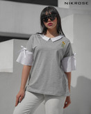 تیشرت زنانه سایز بزرگ یقه و آستین نساجی