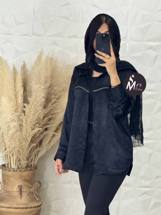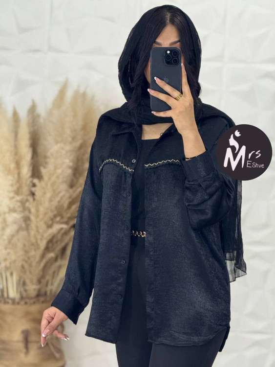 شومیز ترمه،جنس شیمر واکسی درجه یک،جلو شومیز دکمه خور،آستین بلند مچی دکمه خور،روی سینه کار شده،قد شومیز ۶۵،ی کار خنک و سبک و راحت مخصوص کسایی که دنبال یه کار شیک ومجلسی و لطیف هستند.