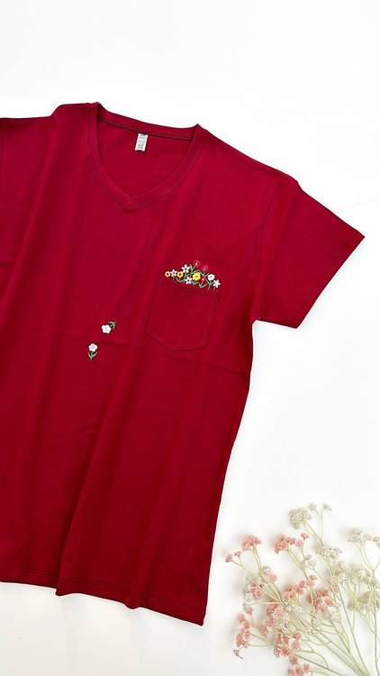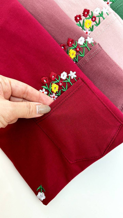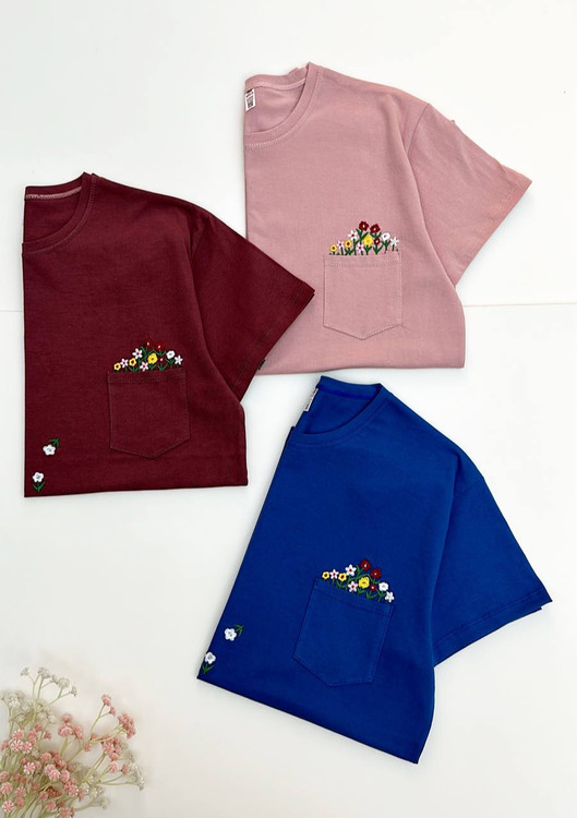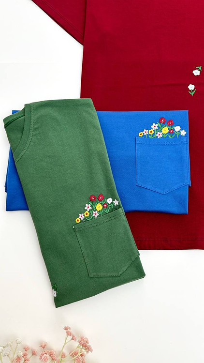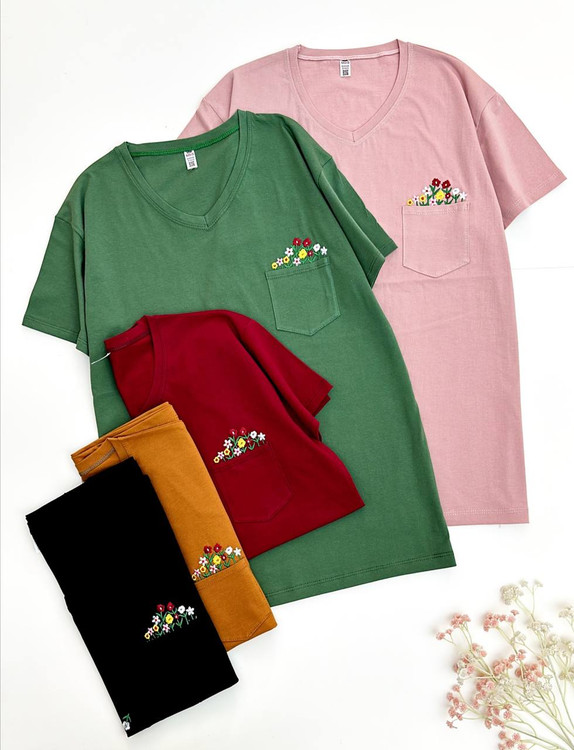 تیشرت گلدوزی گل بهار،جیب دار،گلدوزی شده تراکم بالا،جنس نخ پنبه درجه یک،عرض ۵۴ و قد ۷۰