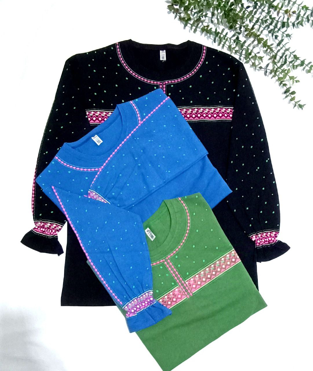 بلوز آستین بلند مچ دار گلدوزی پفکی نخ پنبه