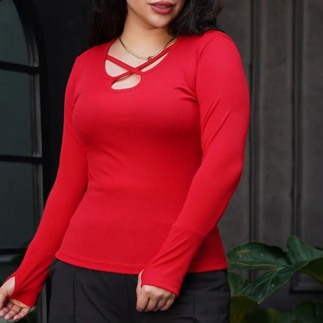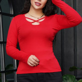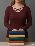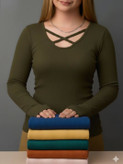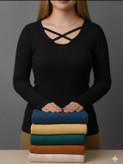 بلوز یقه ضربدری آستین فینگردار کبریتی