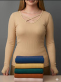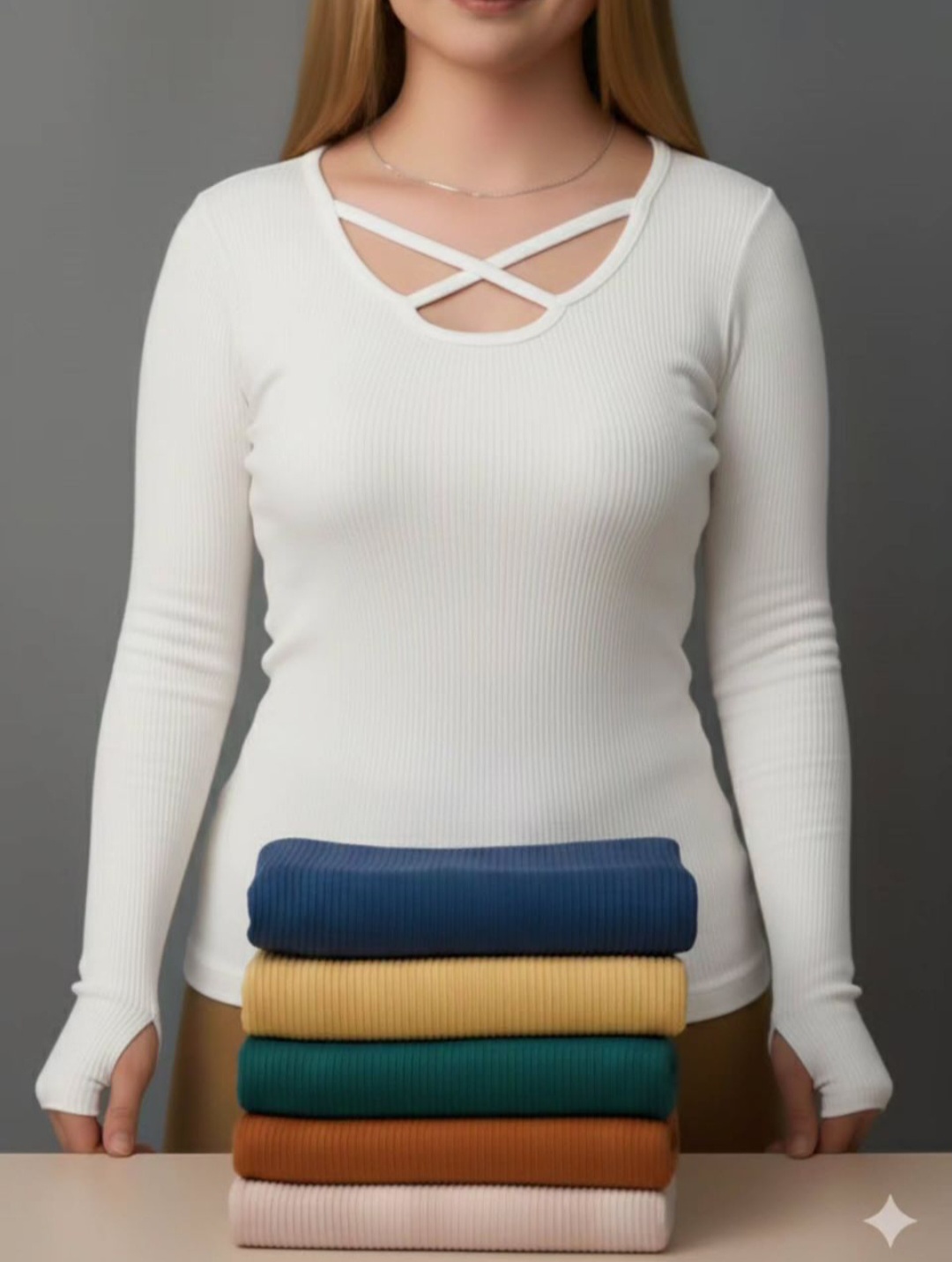 + موارد بیشتربلوز مناسب فصل سرما،زیر پالتو و کاپشن نیازه به یه بلوز شیک وساده،آستین فینگردار که خودش جای دستکش رو مر نیکنه،جنسش کبریتی و نرم و لطیفه