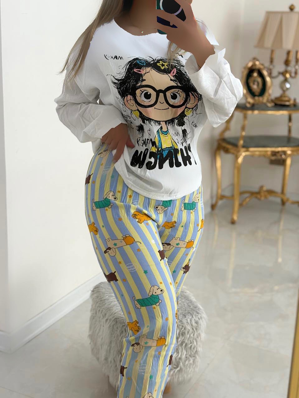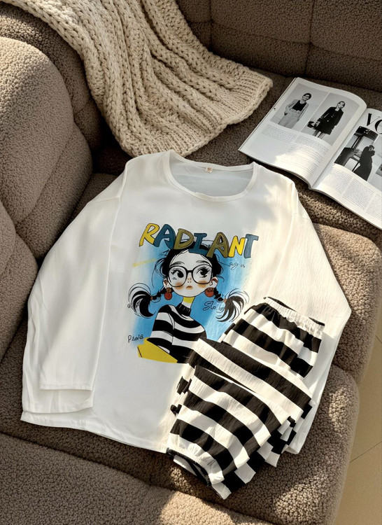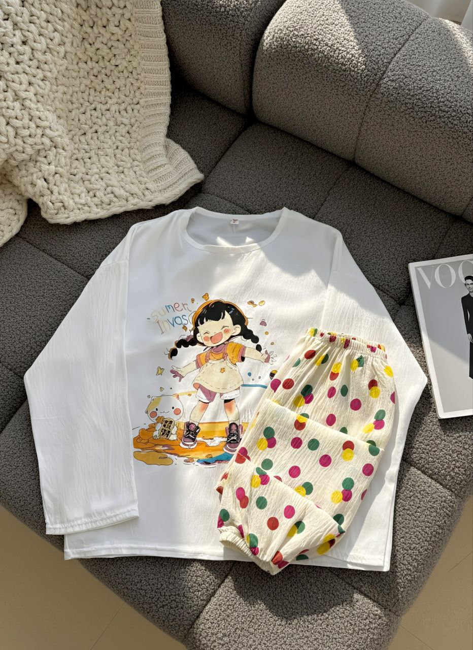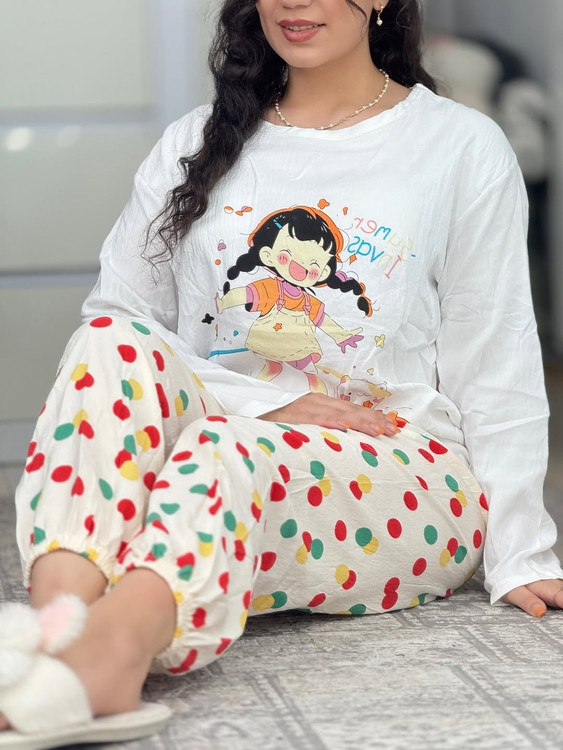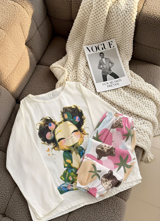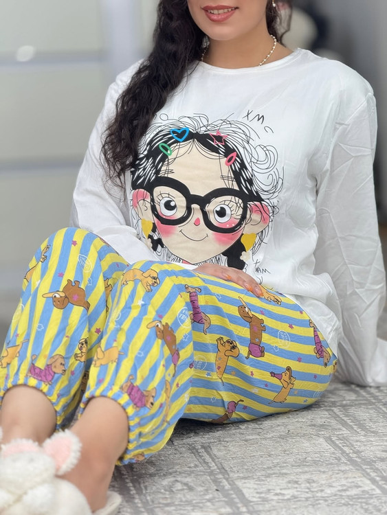 طرح انیمیشنی دو تیکه نخ کریشمه آستین بلند،در ۶ طرح زیبا موجوده،یه جنس سبک و نرم داره ،به هیچ وجه لکه روش نمیشینه و با شستن سریع پاک میشه،بلوز قسمت سینه کاپداره که بلوز رو شیکتر نشون میده،شلوار هم کمر کش و مچ شلوار هم کش منعطف ونرمی داره،مناسب توی خونه و مهمونی های دورهمی خودمونی
