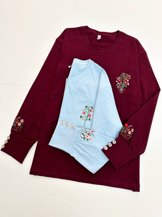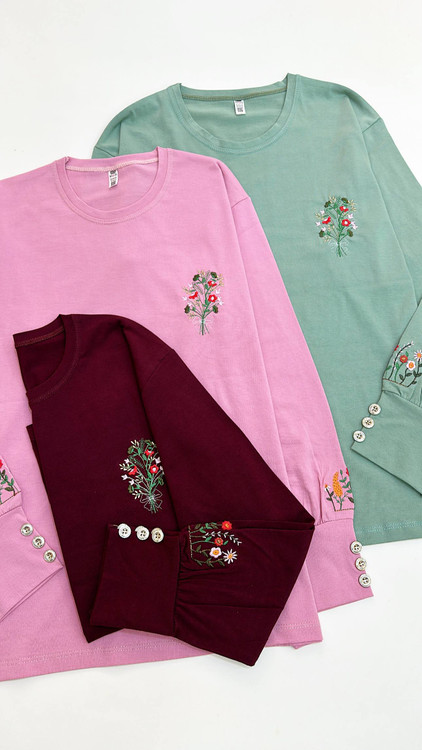 بلوز گلدوزی جنس پنبه سوپر،مناسب برای همه مدل پوست و مخصوص پوست های حساس که به انواع پارچه های دیگه حساسیت دارن،روی سینه گلدوزی کار شده و روی استین،آستین مچی و سه تا دکمه برای نمای قشنگتر روش کار شده،تنخورش شیک و زیباست،برای خونه،مهمونی ها یه انتخاب بسیار شیکه و جذابه،فری سایز تا ۴۴ کامل اندازست ولی سایز ۴۶ که ریزه باشه هم اندازست